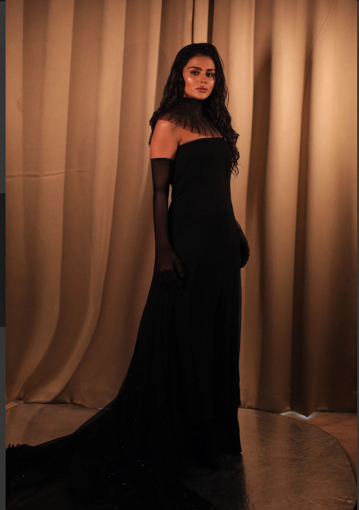 Structured yet fluid, this sculptural necklace features fine pin-tuck detailing and a moldable wire core, allowing for a custom shape with each wear. Beaded embellishments trace the neckline, merging artisanal technique with contemporary edge—an elegant accent with bold presence.