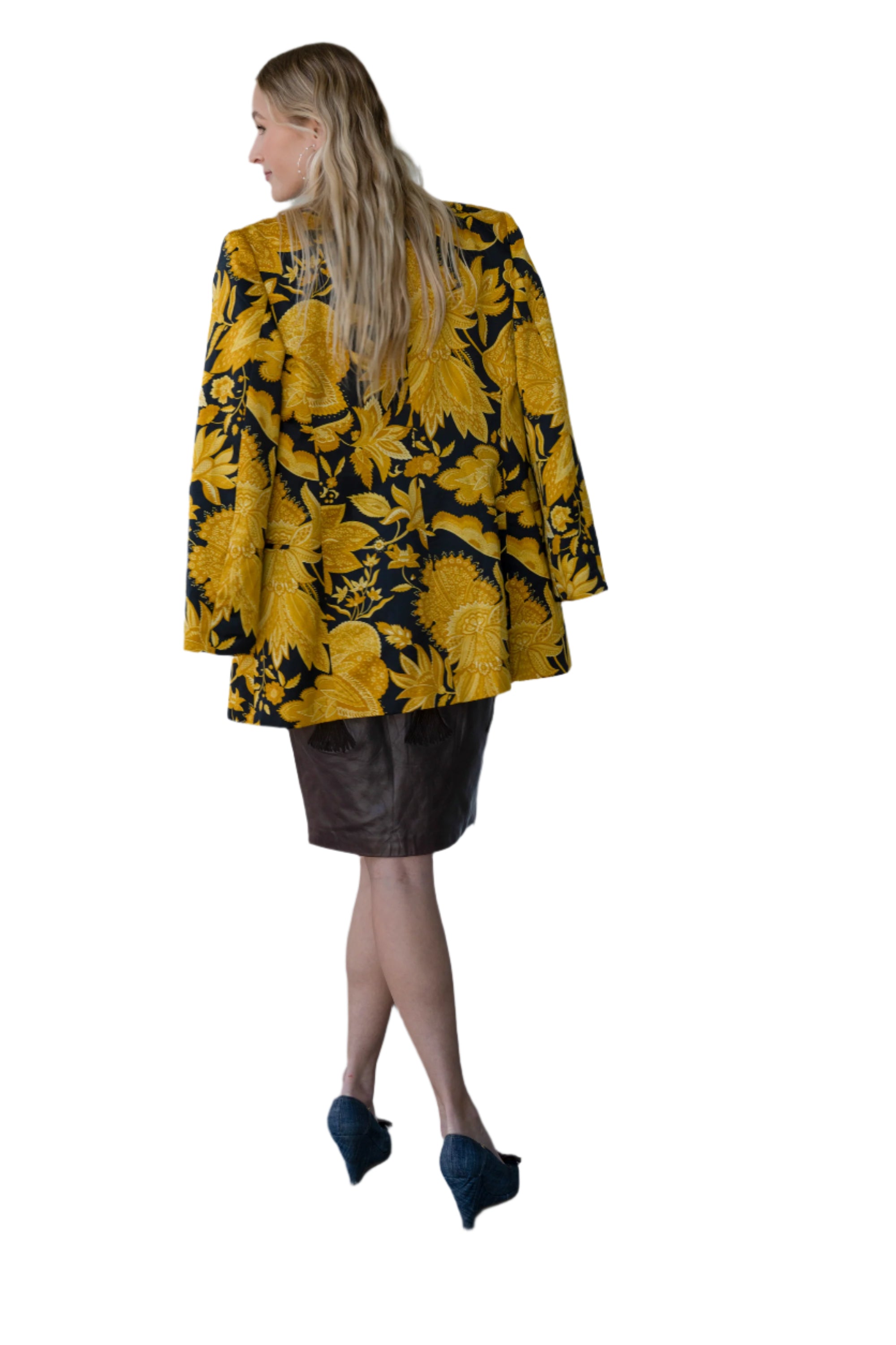 Vintage Luarte de Legare Black Blazer with Yellow Flower Print