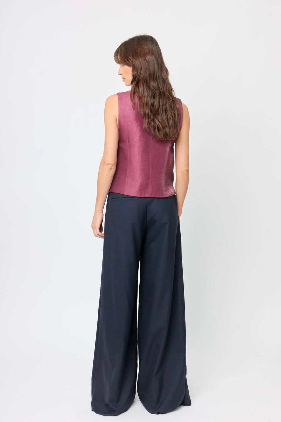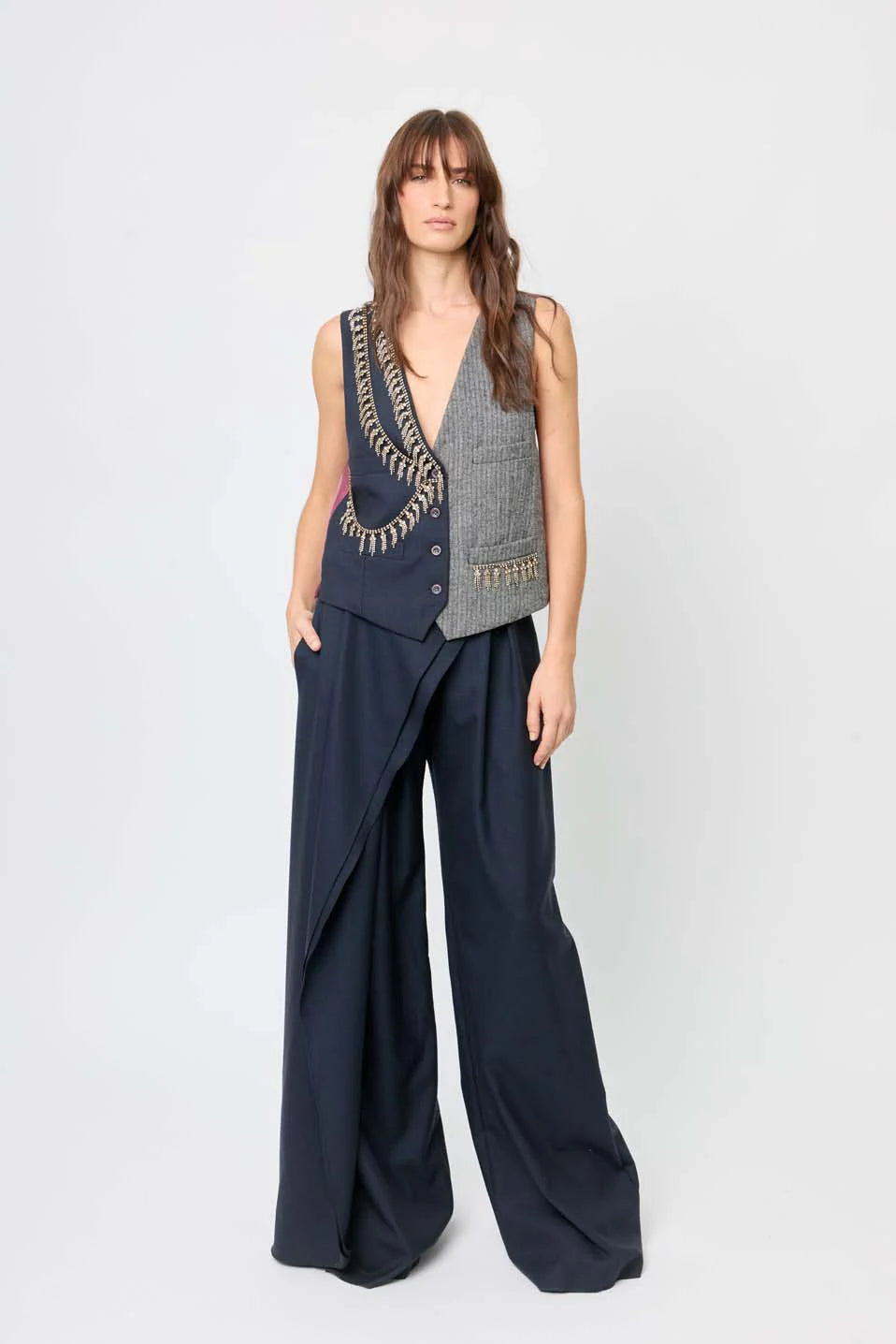The Oak Pant features a perfect fit with a special touch, a front single - pleated stitched. Made with wool in navy they will be the most original piece in your closet. Its unique design allows for a variety of styling options, making it incredibly versatile. Pair it with the Totem Vest and Dakonda coat for a complete look.
