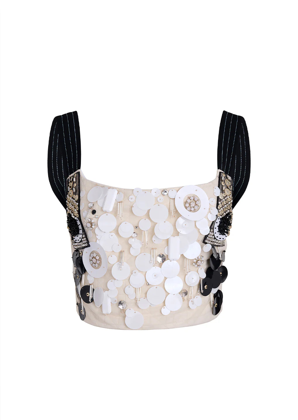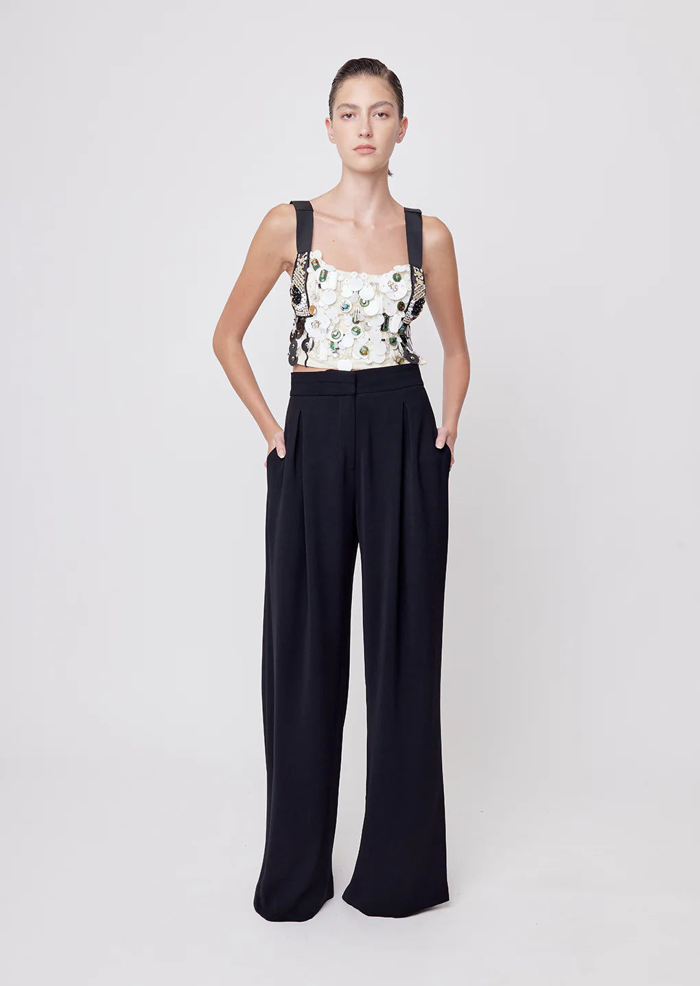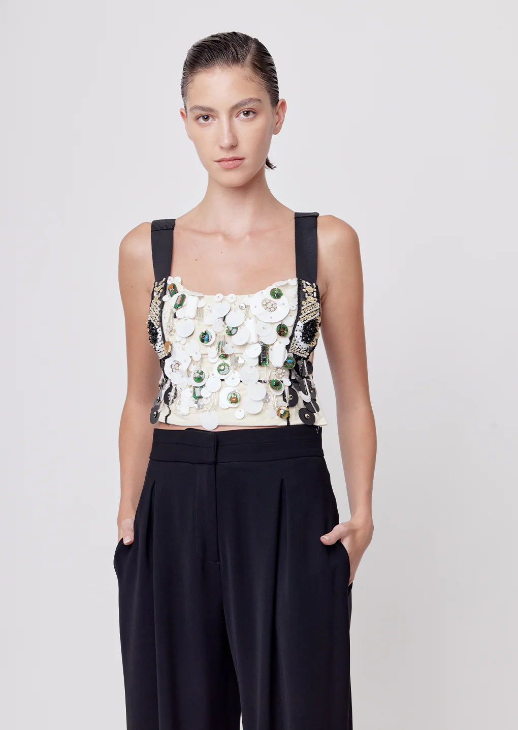 The Electric top is a crop top with luxurious handmade embroidery, making it a modern and unique piece to your wardrobe. The embroidery adds a touch of sophistication. It pairs perfectly with our Ritz Pant for an elegant look.